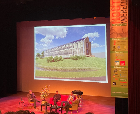 Het tweede gesprek ging over het onderwerp 'Kansen in de houtbouwrevolutie' en werd gevoerd door Houtwereld-hoofdredacteur Jan Maurits Schouten. Samen met architect Thomas Bedaux, Bas Boerboom en onze eigen collega Hans van der Grinten ging hij dieper op dit onderwerp in. Hans heeft tijdens dit gesprek een helder verhaal verteld over houtbouw, maar ook zijn verleden in deze wereld en hoe dit samen is gekomen met de BanGroep.