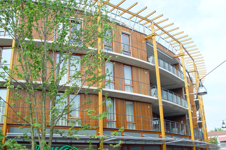Transport en bewerking is ook geen issue, zegt Van der Lugt. "Hout is veel lichter dan beton en staal, waardoor vervoer veel minder milieu-impact geeft. En er wordt vijf tot tien keer zo veel CO2 opgeslagen in het hout als dat er vrijkomt bij het productieproces."