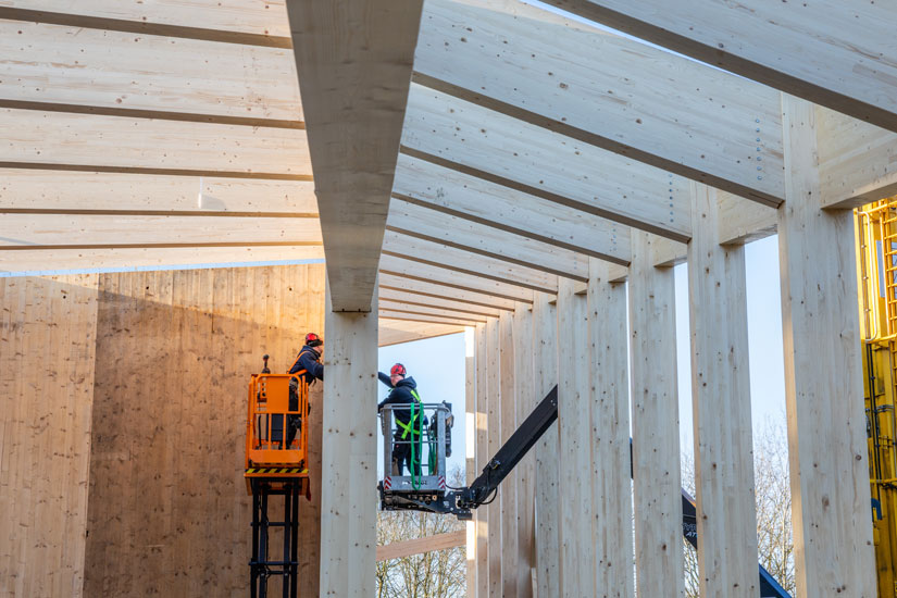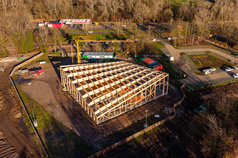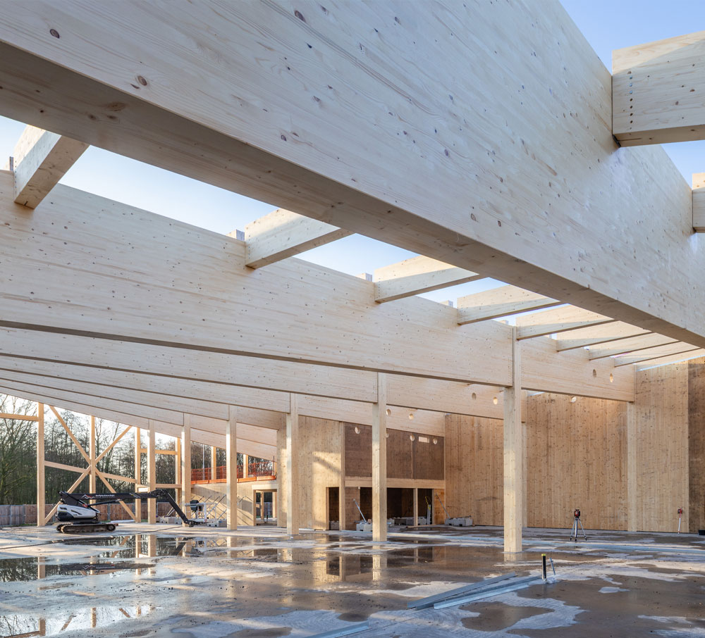 Museumpark VONK in Eindhoven is een innovatief museumgebouw binnen het preHistorisch Dorp en vormt een icoon in biobased en circulair bouwen. Arcon levert en monteert een belangrijk deel van het houten casco, met gelamineerde kolommen en liggers, CLT-wanden en gekromde HSB-dakelementen.